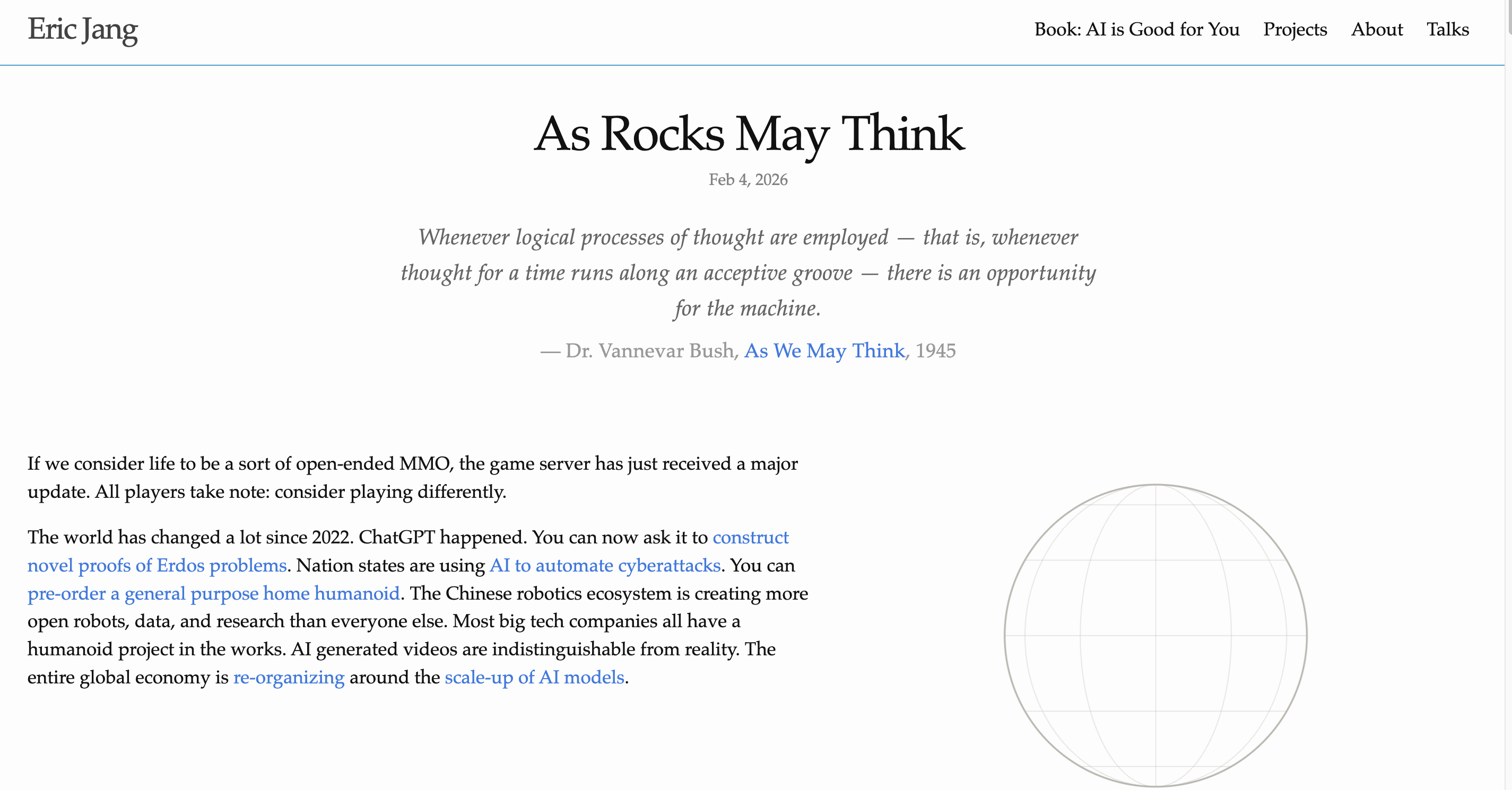 #4 As Rocks May Think by Eric Jang